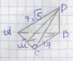 Дано: \(AC = BC = 7\), \(\angle ACB = 90^\circ\), \(AD = 7\sqrt{5}\), \(DB \perp ABC\).