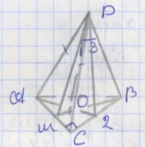 Треугольник \(ABC\) прямоугольный с прямым углом при вершине \(C\), и стороны \(AC\) и \(BC\) равны 2 см. Это значит, что гипотенуза \(AB\) равна \( \sqrt{AC^2 + BC^2} = \sqrt{2^2 + 2^2} = \sqrt{8} = 2 \sqrt{2} \). Центр описанной окружности \(O\) для прямоугольного треугольника находится в середине гипотенузы, поэтому его координаты можно определить как середину отрезка \(AB\). Если принять координаты \(C\) за начало системы, \(C = (0,0,0)\), то \(A = (2,0,0)\), \(B = (0,2,0)\), тогда центр \(O\) будет иметь координаты \( ( \frac{2+0}{2}, \frac{0+2}{2}, 0 ) = (1,1,0) \).