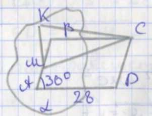 Дано: сторона ромба \(28\), угол \(BAD = 30^\circ\), расстояние от прямой \(BC\) до плоскости \(\alpha\) равно \(7\sqrt{3}\).