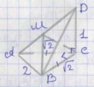 В треугольнике \(BCD\) по теореме Пифагора \(BD = \sqrt{BC^2 + CD^2} = \sqrt{2 + 1} = \sqrt{3}\).