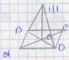 Плоскость \(BMD\) образована точками \(B\), \(M\) и \(D\), и в ней лежат векторы \(\overrightarrow{BM}\) и \(\overrightarrow{BD}\). Вектор \(\overrightarrow{BM}\) можно представить как сумму \(\overrightarrow{BO} + \overrightarrow{OM}\), где \(\overrightarrow{OM}\) коллинеарен \(\overrightarrow{MO}\). Так как \(\overrightarrow{MO} \perp \overrightarrow{BO}\) и \(\overrightarrow{MO} \perp \overrightarrow{BD}\), то \(\overrightarrow{MO}\) перпендикулярен обоим векторам, лежащим в плоскости \(BMD\). Следовательно, \(\overrightarrow{MO}\) является нормалью к плоскости \(BMD\), а значит плоскости \(ABC\) и \(BMD\) перпендикулярны.