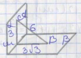 Длина отрезка \(AB = 6\), расстояния от концов до линии пересечения плоскостей \(d_A = 3\) и \(d_B = 3\sqrt{3}\).
