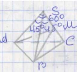 Плоские углы трёхгранного угла при вершине \(S\) равны \(45^\circ\), \(45^\circ\) и \(60^\circ\).