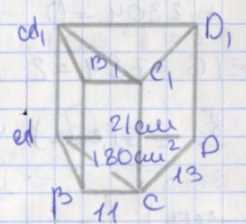 Основанием прямой призмы \(ABCDA_1 B_1 C_1 D_1\) является равнобокая трапеция \(ABCD\), основания которой \(BC\) и \(AD\) соответственно равны 11 см и 21 см, а боковая сторона — 13 см. Площадь диагонального сечения призмы равна 180 см². Найдите: