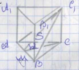 Пусть \(S\) — площадь основания, \(\alpha\) — угол между плоскостью \(ABC_1\) и основанием.