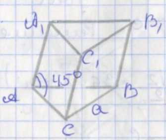 Площадь параллелограмма равна произведению сторон на синус угла между ними. Для граней с углом \(45^\circ\) площадь равна \(a^2 \sin 45^\circ = a^2 \frac{\sqrt{2}}{2}\). Для грани с углом \(90^\circ\) площадь равна \(a^2 \sin 90^\circ = a^2\). Суммируя, получаем площадь боковой поверхности: \(S_{\text{бок}} = a^2 + 2 \times a^2 \frac{\sqrt{2}}{2} = a^2 + a^2 \sqrt{2}\).
