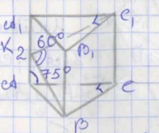 Высота призмы \(AA_1\) равна 2 см. Угол между ребром \(AA_1\) и ребром \(AC\) равен \(75^\circ\). Из этого следует, что длина \(AC\) связана с высотой и углом через косинус: \( \cos 75^\circ = \frac{AD}{AA_1} = \frac{AC/2}{2} = \frac{AC}{4} \), откуда \(AC = 4 \cos 75^\circ\). Значение \(\cos 75^\circ\) равно \( \frac{\sqrt{6} — \sqrt{2}}{4} \), поэтому \(AC = \sqrt{6} — \sqrt{2}\).