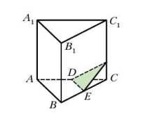 Плоскость сечения проходит через прямую \(DE\) и образует с плоскостью основания угол \(30^\circ\). Это значит, что сечение наклонено относительно основания под углом \(30^\circ\). Поскольку плоскость пересекает ребро \(CC_1\) в точке \(F\), высота сечения вдоль ребра \(CC_1\) связана с высотой призмы \(h\) и углом наклона. Высота сечения равна \(CF = h \sin 30^\circ = \frac{h}{2}\). При этом длина \(DE\) остаётся горизонтальной проекцией стороны сечения.