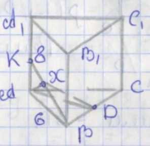 Проектируем \(AD\) и \(BK\) на основание. Общий перпендикуляр к \(AD\) и \(BK\) — высота треугольника \(AXD\).