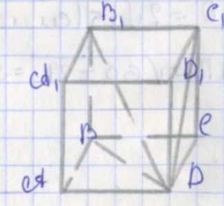 Для второго пункта: угол между диагональю призмы и плоскостью основания — это угол между диагональю призмы и её проекцией на основание, то есть угол между диагональю призмы \(D D_1\) и диагональю основания \(D B\). Этот угол равен \(45^\circ\), что соответствует углу \(\angle B_1 D B = 45^\circ\).