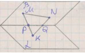 Точка \( K \) принадлежит плоскости \( \alpha \), а точки \( M \) и \( N \) — плоскости \( \beta \).