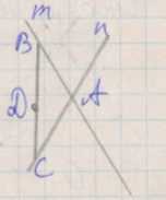 Далее рассмотрим точки \( B \) и \( C \), где \( B \in m \), а \( C \in n \). Поскольку \( m \subset \alpha \) и \( n \subset \alpha \), то точки \( B \) и \( C \), принадлежащие этим прямым, также лежат в плоскости \(\alpha\). Это следует из определения плоскости, которая содержит все точки своих прямых. Теперь возьмём отрезок \( BC \), соединяющий эти две точки. По свойству плоскости, если две точки принадлежат плоскости, то и весь отрезок, соединяющий эти точки, также полностью лежит в этой плоскости. Следовательно, отрезок \( BC \subset \alpha \).