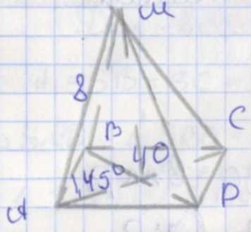 В треугольнике AMO высота MO = \(8 \cdot \sin 45^\circ = 8 \cdot \frac{\sqrt{2}}{2} = 4\sqrt{2}\) см.