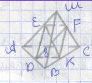1. Точки \(D, E, F\) — середины рёбер \(AB, AM, MC\) правильной пирамиды \(MABC\). По свойству середины отрезков выполняются равенства: \(EF = \frac{1}{2} AC\), \(DK = \frac{1}{2} AC\), \(ED = \frac{1}{2} MB\), \(FK = \frac{1}{2} MB\), а также \(EK = DF\).