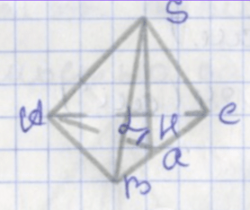 4. Высота бокового треугольника выражается через угол \(\alpha\) и сторону основания. Для этого используем половину двугранного угла \(\frac{\alpha}{2}\).
