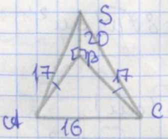 ности пирамиды, если АВ = ВС = 17 см, АС = 16 см, МВ = 20 см.