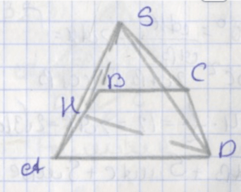 \( S_{\text{бок. п.}} = \frac{S_{\text{осн}} \cdot SOС\ n}{\cos \angle SUP} = \frac{1}{2} P \cdot SK = \)