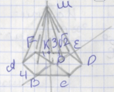 2. Высота пирамиды \(MO = 3 \sqrt{2}\). Точка \(M\) находится над центром основания \(O\), то есть \(M\) имеет координаты \((0, 0, 3 \sqrt{2})\).