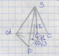3. Для нахождения высоты основания призмы применяем теорему Пифагора. Высота \( SU \) вычисляется по формуле \( SU^2 = SO^2 + OH^2 \), где \( SO \) и \( OH \) — катеты прямоугольного треугольника, образованного внутри основания. Подставляя известные значения, получаем \( SU = 13 \) см. После этого подставляем все известные данные в формулу площади боковой поверхности:
