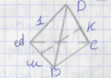 Середины рёбер \(M\) и \(K\) находятся на ребрах \(AB\) и \(CD\) соответственно. В правильном тетраэдре все ребра равны 1 см.