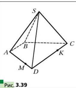 На рёбрах \(AD\) и \(CD\) пирамиды \(SABCD\) отметили соответственно точки \(M\) и \(K\) (рис. 3.39). Постройте линию пересечения плоскостей \(BSC\) и \(MSK\).