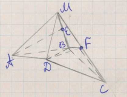 8. Точки \(E\) и \(F\) лежат на ребрах \(MB\) и \(MC\) соответственно, которые принадлежат боковой поверхности пирамиды.
