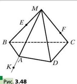 Дана пирамида \(MABCD\) (рис. 3.48). На боковых рёбрах \(MB\) и \(MC\) отметили соответственно точки \(E\) и \(F\), а на продолжении ребра \(MA\) за точку \(A\) — точку \(K\). Постройте сечение пирамиды плоскостью \(EFK\).