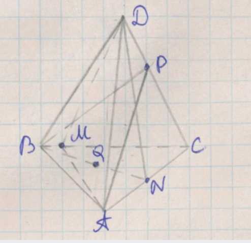 9. Точка \(Q\) является пересечением отрезков \(BP\) и \(DN\), следовательно, она лежит одновременно в плоскостях \(ABP\), \(ADM\) и \(BDN\).