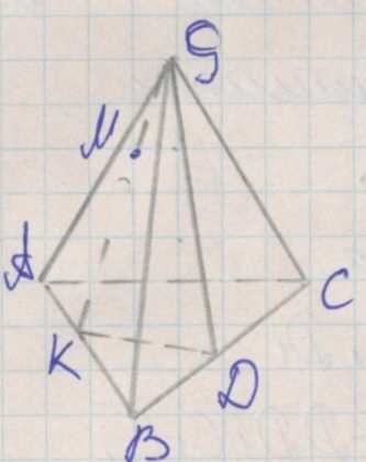7. Точки \( S \), \( D \), \( M \), \( K \) лежат в одной плоскости, образующей сечение тетраэдра.