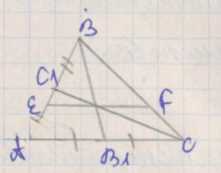 Дано, что \(BB_1\) и \(CC_1\) — медианы треугольника \(ABC\), а \(EF \parallel AC\), где \(E\) на \(AB\), \(F\) на \(BC\).