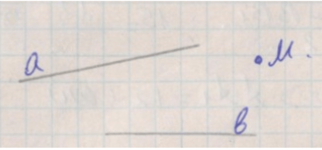 2. Точка \( M \) не принадлежит ни прямой \( a \), ни прямой \( b \).