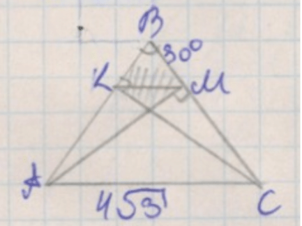 Найдем \( KM \) из подобия треугольников: \( \cos B = \frac{KM}{AC} = \frac{\sqrt{3}}{2} \), значит \( KM = AC \cdot \frac{\sqrt{3}}{2} = 6 \) см.