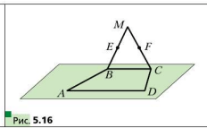 Отрезки \( BC \) и \( AD \) — основания трапеции \( ABCD \). Треугольник \( BMC \) и трапеция \( ABCD \) не лежат в одной плоскости (рис. 5.16).