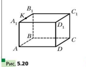 На ребре \( AB_1 \) прямоугольного параллелепипеда \( ABCDA_1B_1C_1D_1 \) отметили точку \( K \) (рис. 5.20). Постройте линию пересечения плоскостей: 1) \( CC_1K \) и \( ABB_1 \); 2) \( CDK \) и \( ABB_1 \).