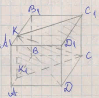1) Рассмотрим плоскость \( ABB_1 \), которая проходит через точки \( A, B, B_1 \). Эта плоскость является гранью прямоугольного параллелепипеда. Точка \( K \) лежит на ребре \( AB_1 \), значит \( K \in ABB_1 \). Плоскость \( CC_1K \) проходит через точки \( C, C_1, K \), где \( C \) и \( C_1 \) — вершины параллелепипеда, а \( K \) — точка на ребре \( AB_1 \). Чтобы найти линию пересечения плоскостей \( CC_1K \) и \( ABB_1 \), нужно найти две точки, которые лежат одновременно в обеих плоскостях. Одна из таких точек — \( K \). Теперь найдем вторую точку. Рассмотрим ребро \( BB_1 \), принадлежащее плоскости \( ABB_1 \). Если плоскость \( CC_1K \) пересекает ребро \( BB_1 \), то точка пересечения \( K_1 \) будет второй точкой линии пересечения. Значит линия пересечения — прямая \( KK_1 \), где \( K_1 \) лежит на ребре \( BB_1 \).