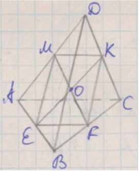 Док-во: Точки \( M, E, F, K \) — середины рёбер \( AD, AB, BC, CD \) соответственно.
