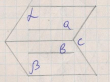 Прямая \( a \) принадлежит плоскости \( \alpha \), прямая \( b \) — плоскости \( \beta \), прямая \( c \) — линия пересечения плоскостей \( \alpha \) и \( \beta \). Докажите, что если прямая \( c \) не пересекает ни одну из прямых \( a \) и \( b \), то \( a \parallel b \).