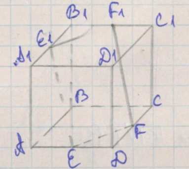 Сечение — шестиугольник \(E, F, F_1, C_1, B_1, E_1\).