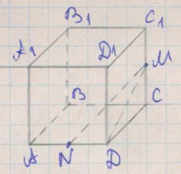 Сечение куба — четырёхугольник \(D N M M_1\).