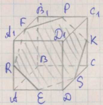 Вершины сечения: \(P\) (на ребре \(B_1C_1\)), \(K\) (середина \(CC_1\)), \(S\) (на ребре \(CD\)), \(E\) (середина \(AD\)), \(R\) (на ребре \(AB\)), \(F\) (середина \(A_1B_1\)).