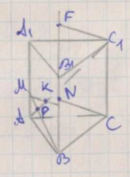 3. По условию задачи точки \(M\) и \(N\) — середины рёбер, значит, \(AP = \frac{1}{4}AF\).