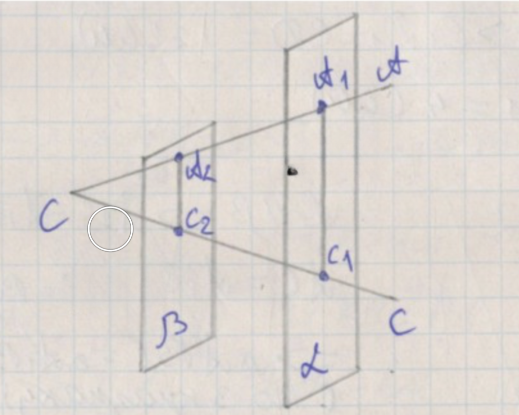 Чтобы найти отрезок \(C_1C_2\), вычтем длину \(BC_1\) из \(BC_2\): \(C_1C_2 = BC_2 — BC_1 = 18 — 12 = 6\) см. Этот результат показывает, что расстояние между точками пересечения плоскостей \(\alpha\) и \(\beta\) на стороне \(BC\) равно 6 см.