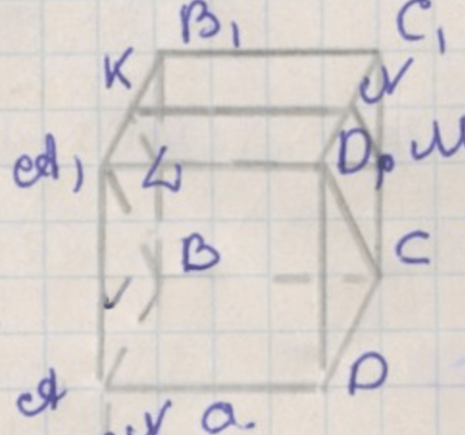8. Для вычисления длины диагонали сечения используем векторы. Диагональ \(KL\) равна расстоянию между точками \(K\) и \(L\), вычисляем: