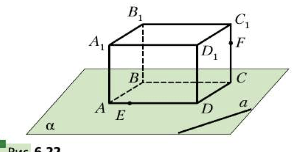 Прямая \( a \) и основание \( ABCD \) прямоугольного параллелепипеда \( ABCDA_1B_1C_1D_1 \) лежат в плоскости \( \alpha \) (рис. 6.22). На ребре \( AD \) отметили точку \( E \), на ребре \( CC_1 \) — точку \( F \). Постройте сечение параллелепипеда плоскостью, параллельной прямой \( a \) и проходящей через точки \( E \) и \( F \).