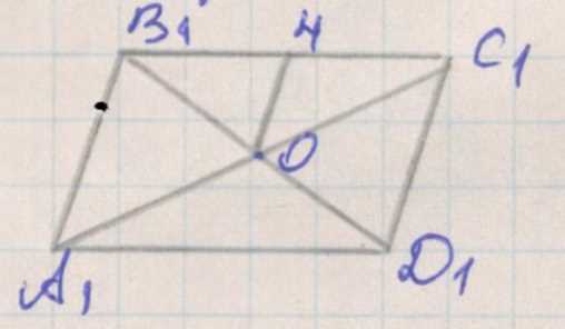 7. В параллелограмме \( A_1B_1C_1D_1 \), являющемся изображением прямоугольника \( ABCD \), точка \( O \) остаётся точкой пересечения диагоналей, и перпендикуляр из \( O \) на сторону \( B_1C_1 \) соответствует перпендикуляру из \( O \) на \( BC \).