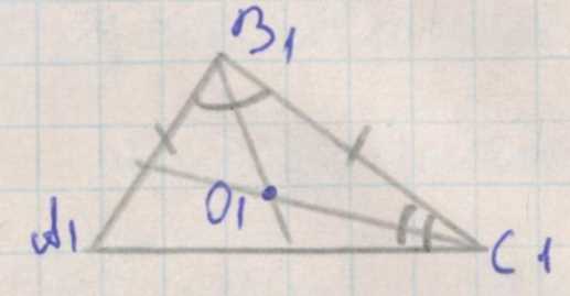 Центр вписанной окружности \( O \) находится на пересечении биссектрис, следовательно, точка \( O_1 \) лежит на биссектрисе из вершины \( B_1 \).