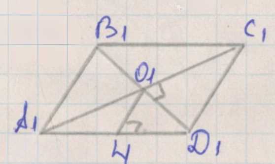 Параллелограмм \( A_1B_1C_1D_1 \) — изображение ромба \( ABCD \). Постройте изображение перпендикуляра, опущенного из точки пересечения диагоналей ромба на сторону \( AD \), если \( \angle A = 60^\circ \).