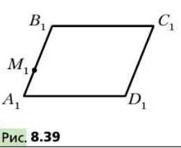 Параллелограмм \( A_1B_1C_1D_1 \) (рис. 8.39) является изображением квадрата \( ABCD \), точка \( M_1 \) — изображением точки \( M \), принадлежащей стороне \( AB \). Постройте изображение точки \( N \), принадлежащей стороне \( BC \), такой, что \( AN \perp DM \).