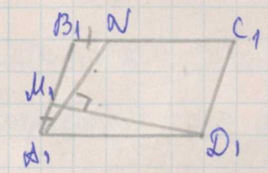 Построим прямую \(D_1M_1\), затем из точки \(A_1\) проведем прямую, перпендикулярную \(D_1M_1\). Точка пересечения этой прямой со стороной \(B_1C_1\) будет точкой \(N_1\).
