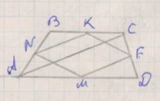 4. Проведём анализ: так как \( MF \parallel NK \) и \( MF \parallel AC \), то трапеция \( MNKF \) подобна отрезку \( AC \), а значит, основания трапеции \( MN \) и \( FK \) пересекаются вне трапеции.